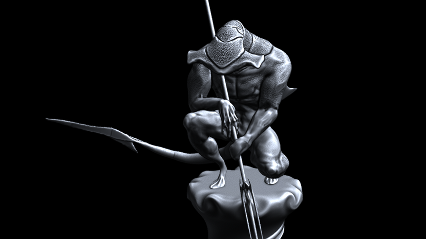 A statue of a hammerhead guard guarding the hidden city "Atlantis".